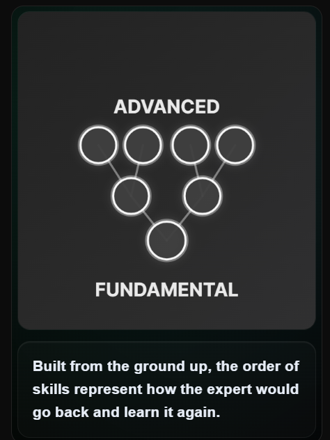 When you click on a node, a card opens up. That card explains the skill in simple words, illustrates what you should be able to do, and gives you tips on how to master that skill. As you improve, that node changes to show your progress.